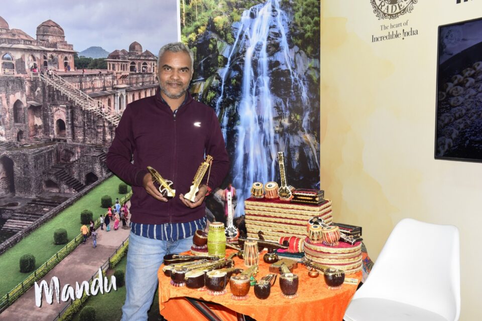 At this festival, artist Rahul Shrivas from Arera Colony, Bhopal, in Madhya Pradesh, is drawing everyone’s attention through his unique craft. Using waste furniture material, he creates miniature replicas of nearly 40 musical instruments, including tabla, dholak, harmonium, sitar, veena, been, flute, jal-tarang, mridangam, khanjari, duff, conch, jalar, kartal, sarangi, shehnai, surmandal, and many more. These replicas not only look visually striking, but also reflect the true spirit of “Vocal for Local.”