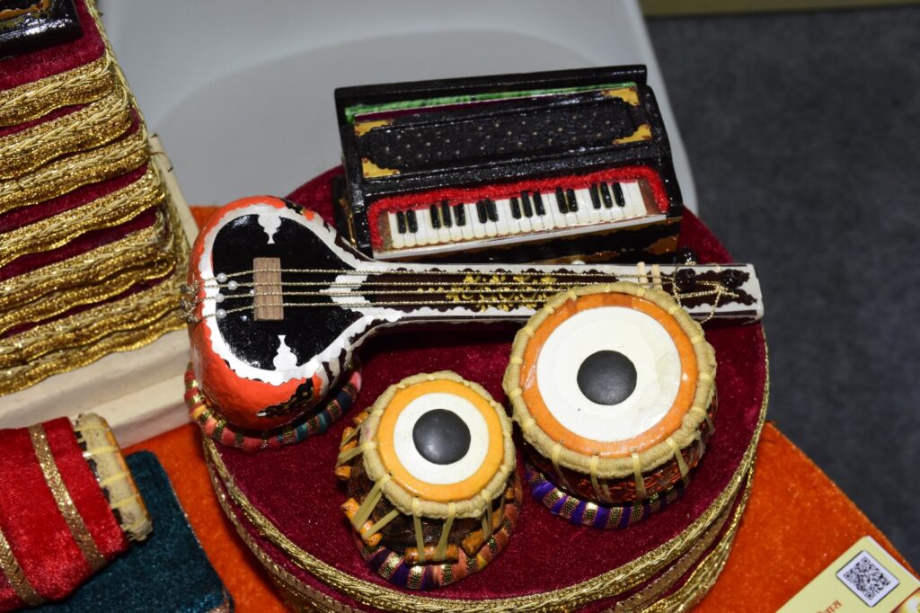 Coming from a music-loving family, Rahul earned his music degree from Prayag University in Madhya Pradesh. He began his journey by performing at music events, but the inability to afford costly instruments inspired him to think creatively and find an alternative. Rahul shared, “Musical instruments were expensive and I could not buy them easily, so I began creating miniature replicas from discarded furniture material. People loved them, and gradually the demand increased.” Selling these handcrafted replicas soon became his source of livelihood. What began decades ago as a small experiment has today become a symbol of his self-reliance and creativity.